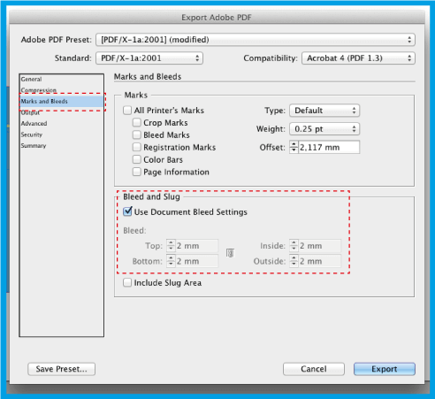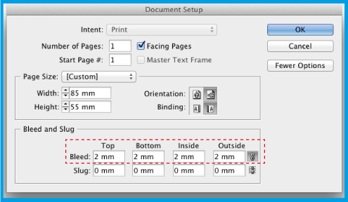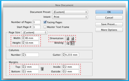 . seçeneğinde, 2 mm girin (bu kenar boşluğu güvenlik alanını tanımlayacaktır, yani tüm metin bu alanın içinde olmalıdır).