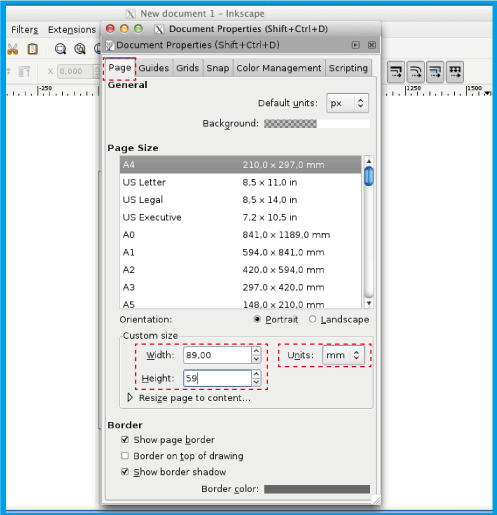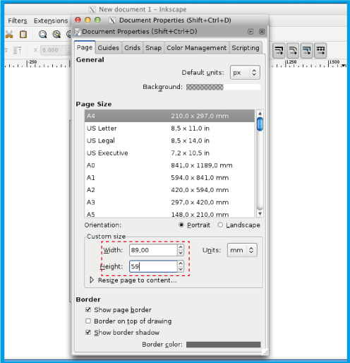 . bölümünde belgenizin genişliğini ve bölümünde yüksekliğini tanımlayın.