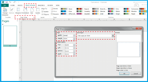 .8,5x5,5 cm boyutlarındaki bir kartvizit için, genişliğe 89 mm (8,9 cm) ve yüksekliğe 59 mm (5,9 cm) girin.