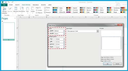 .'na gidin (sağ ok). Belgenin ayarlarını tanımlayabileceğiniz bir pencere (aşağıdaki resim) açacaksınız.