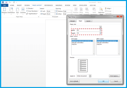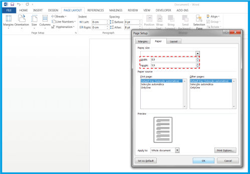 .Açılan kutuda, belgenizin ölçüsünü yerleştirin.